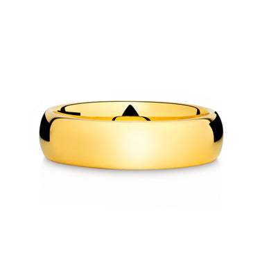 Highly polished finish of gold platting over quality tungsten carbide. A slim, traditional wedding or commitment band.